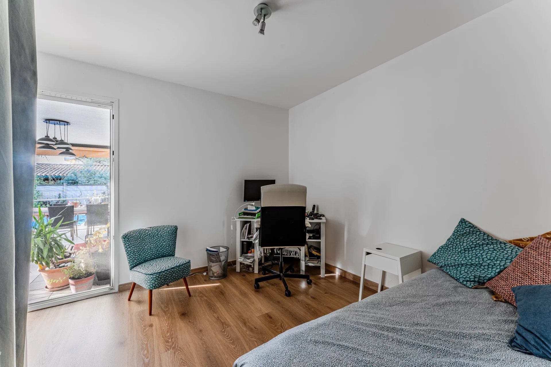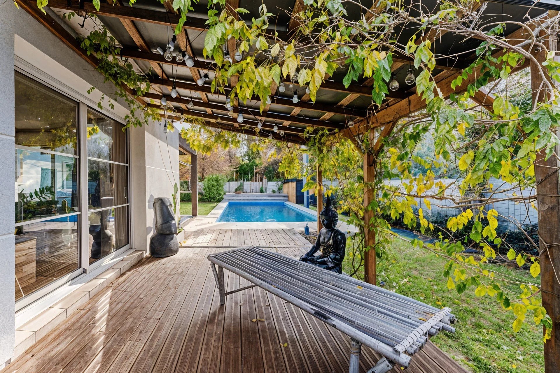 Le jardin arboré est un havre de paix, complété par une piscine invitant à la détente. Plusieurs terrasses sont aménagées pour savourer des moments de tranquillité et de convivialité en plein air.