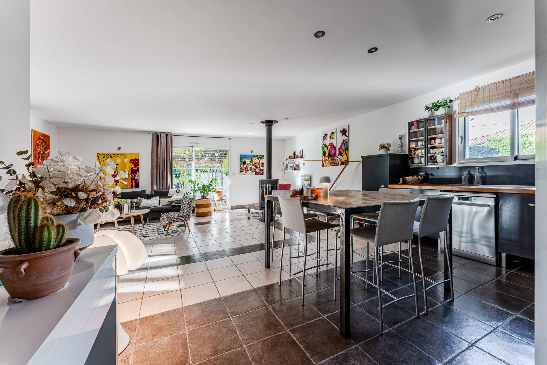 Située dans un quartier paisible de Gujan-Mestras, cette maison T5 de plain-pied vous offre un cadre de vie paisible entouré de verdure.